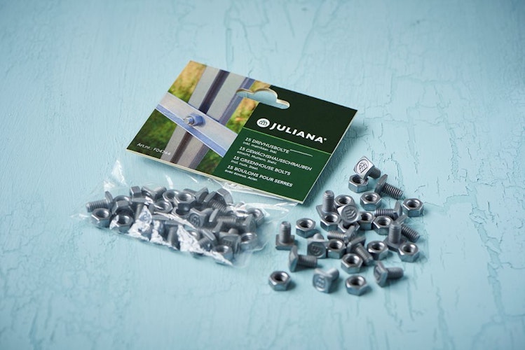 Die Schrauben haben einen viereckigen Kopf und sind passend für alle Profile der Juliana Gewächshäuser.